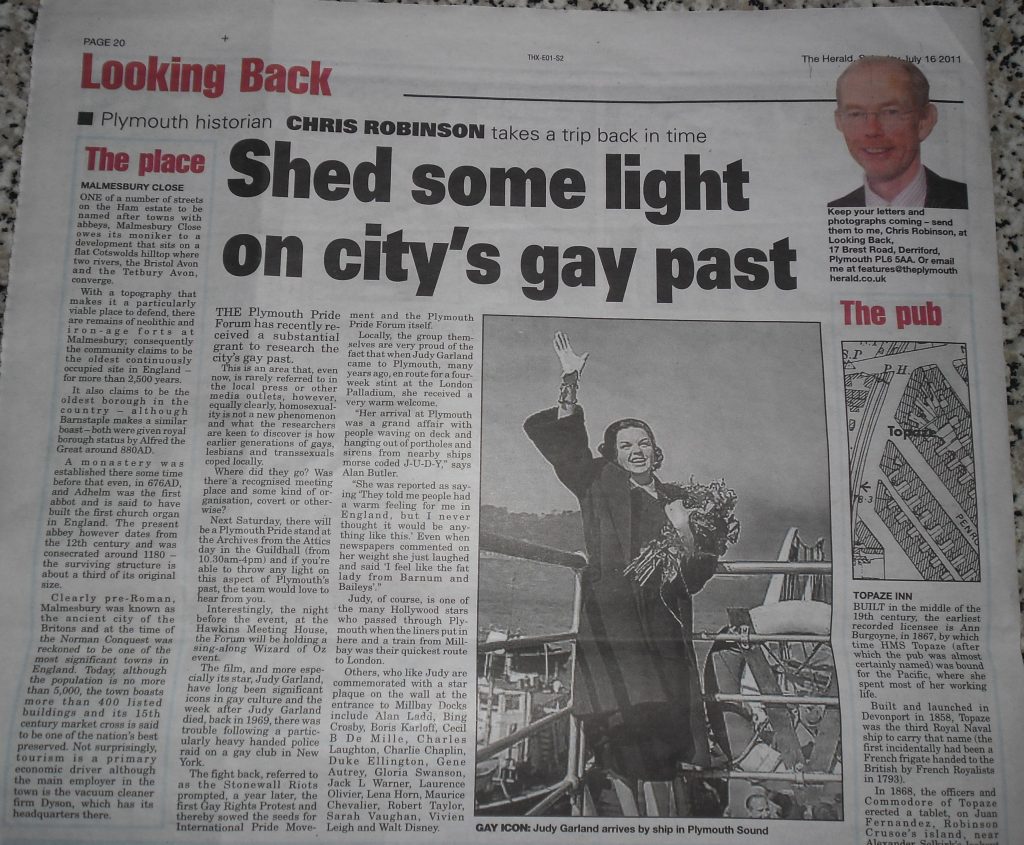 - To prepare and produce an exhibition of LGBTQ+ Plymouth based on the project activity. This exhibition had been agreed (at this time) by the Plymouth City Council for January/February 2012 and would be hosted by the City Museum and Gallery